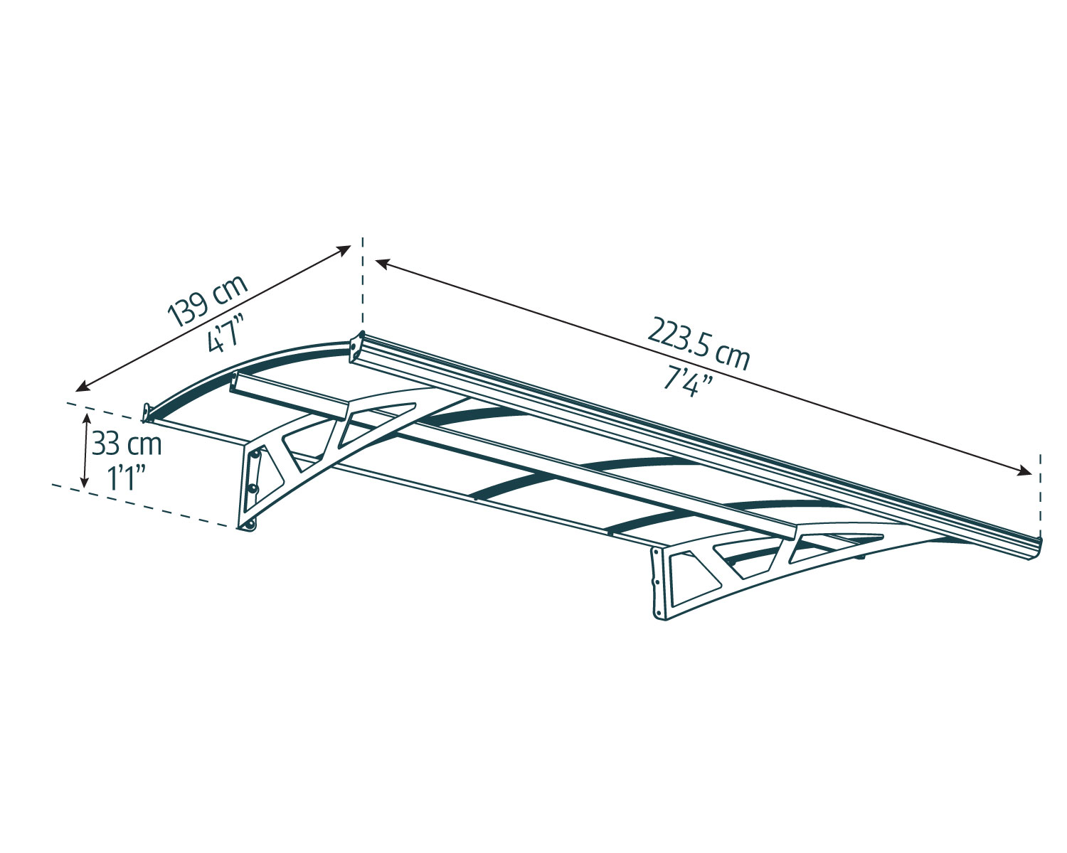 Rugged, striking, and elegant, the Amsterdam Door Cover Awning is designed to provide extra coverage and keep your entrance, door, and facade dry and protected from the elements. The powder coated, galvanized steel support arms, aluminium front and back trims, and the high impact, 100% UV resistant solid panels, make the Amsterdam an ideal solution. Its modern design matches any architectural style and environment. Crafted to ensure durability for many years of use, start protecting your entry today.