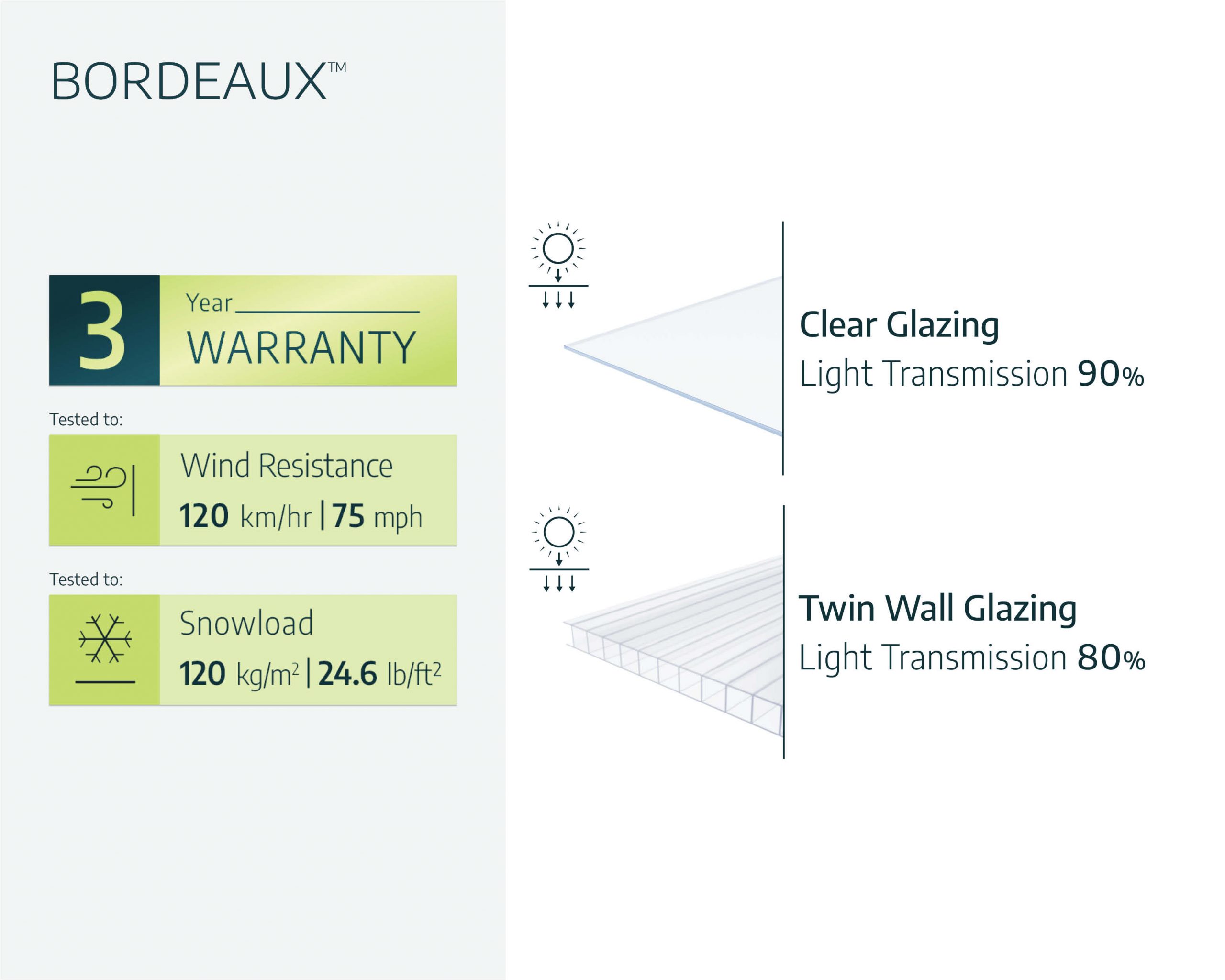 - Lifetime resilient glazing; does not fracture, become brittle or turn yellow over time.