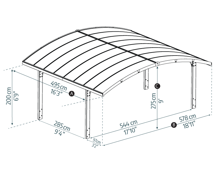 Sophistication meets practicality with the Arizona Double Carport, crafted to meet your needs for outdoor protection. Its two-legged form makes it easy to access and works just as well as a patio cover, offering shade and protection no matter how you use it. The unique wing carport design makes a statement whether you build it facing inward or outward. The frame and roofing were engineered to withstand harsh weather conditions with polycarbonate panels that block harmful UV rays and an aluminium frame built to last. The Arizona double slope carport kit provides your family with an elegant cover that is sturdy, weather and rust-resistant, and maintenance-free for many years to come.