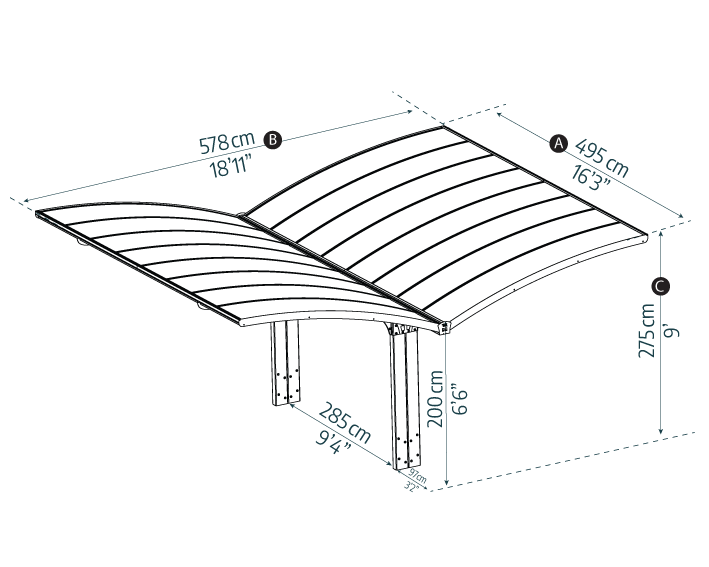 Sophistication meets practicality with the Arizona Double Carport, crafted to meet your needs for outdoor protection. Its two-legged form makes it easy to access and works just as well as a patio cover, offering shade and protection no matter how you use it. The unique wing carport design makes a statement whether you build it facing inward or outward. The frame and roofing were engineered to withstand harsh weather conditions with polycarbonate panels that block harmful UV rays and an aluminium frame built to last. The Arizona double slope carport kit provides your family with an elegant cover that is sturdy, weather and rust-resistant, and maintenance-free for many years to come.