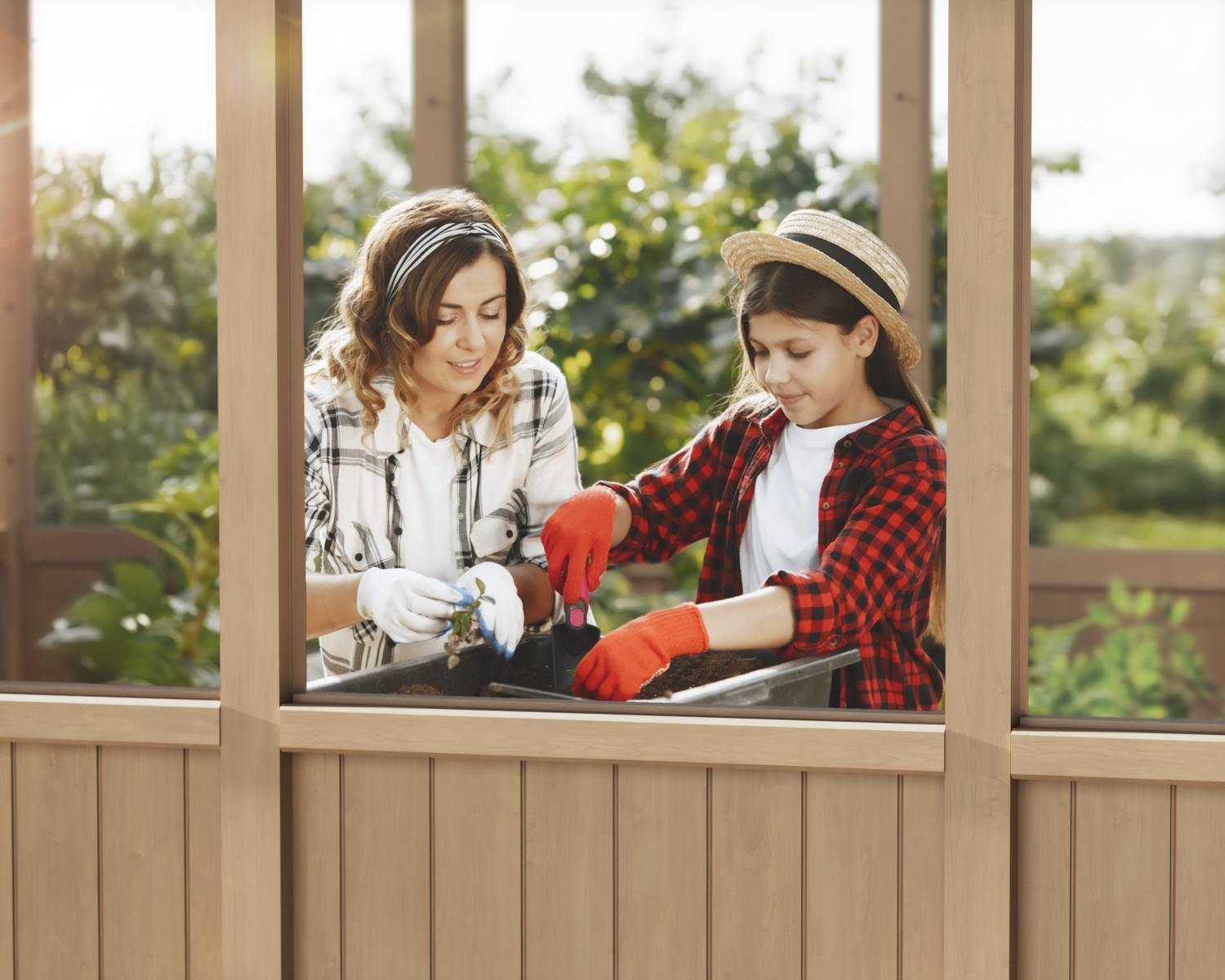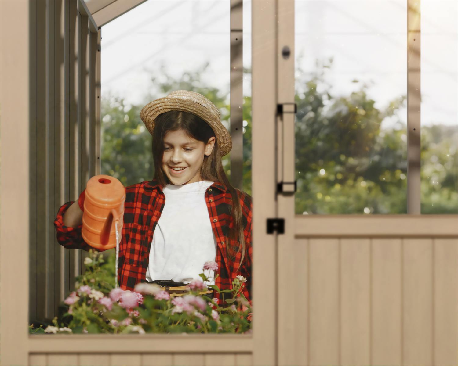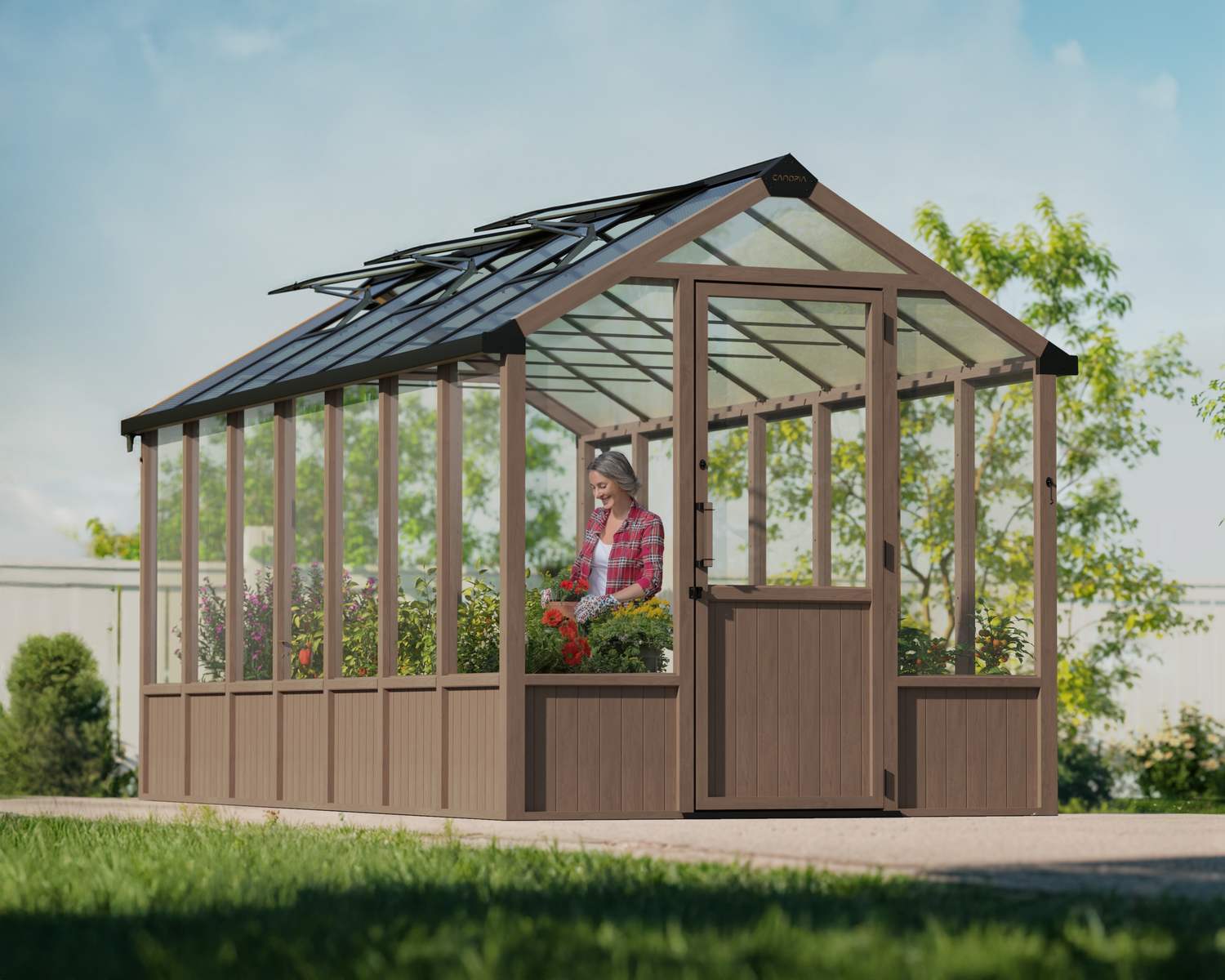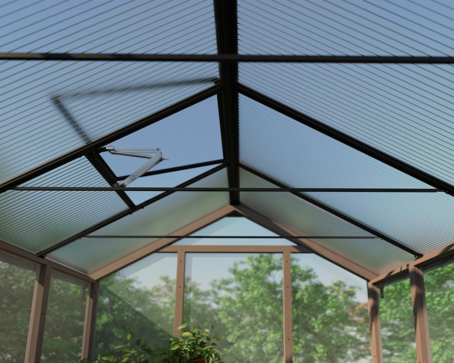 Cedar’s resistance to pests and decay keeps it looking and performing its best year after year, while the crystal-clear panels let in over 90% of sunlight to help your plants thrive. From its low-threshold entry to its automated roof vent, every detail is crafted to make gardening easier and more enjoyable.