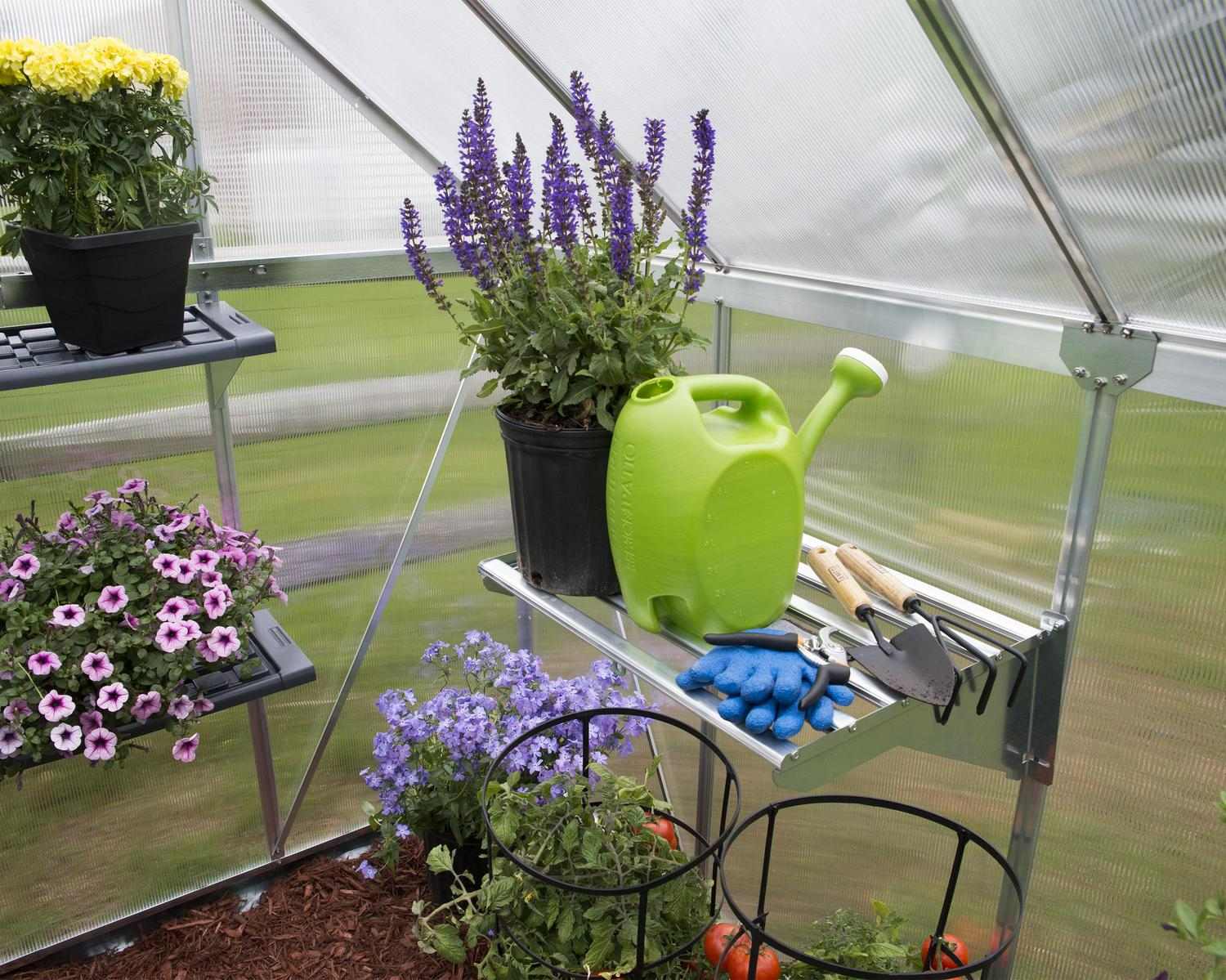 This durable heavy-duty Aluminum shelf kit is designed to be installed in mere minutes and can be easily repositioned or removed. Each shelf supports up to 40kg. This aluminum shelf, compatible with Palram – Canopia greenhouse models only, maximizes the space in your greenhouse and can be installed uniformly next to an identical one to create a seamless shelving platform. These deep shelves are ideal for storing large port, soil bags, fertilizers, and garden supplies.