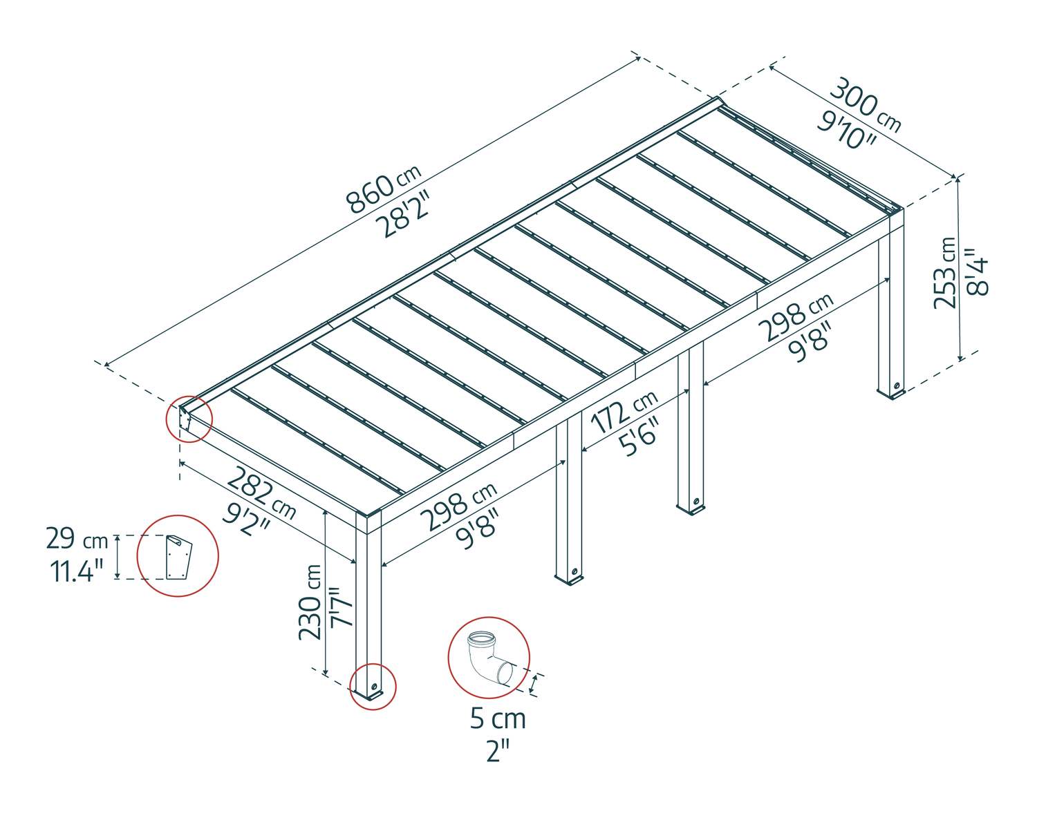 (20% light transmission). - Built-In Gutters: Includes 2 integrated rain gutters hidden in the beams and front posts to direct rainwater.