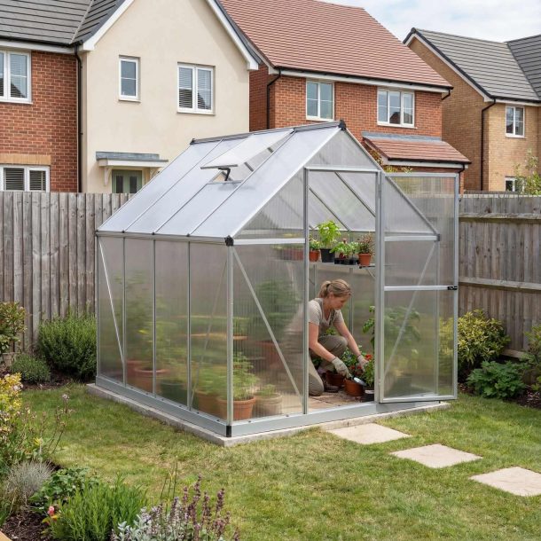 If you need to heat or cool your greenhouse in extreme weather conditions, you may want to consider a twin-wall greenhouse such as the Palram Glory Greenhouse which has a 10mm polycarbonate covering.