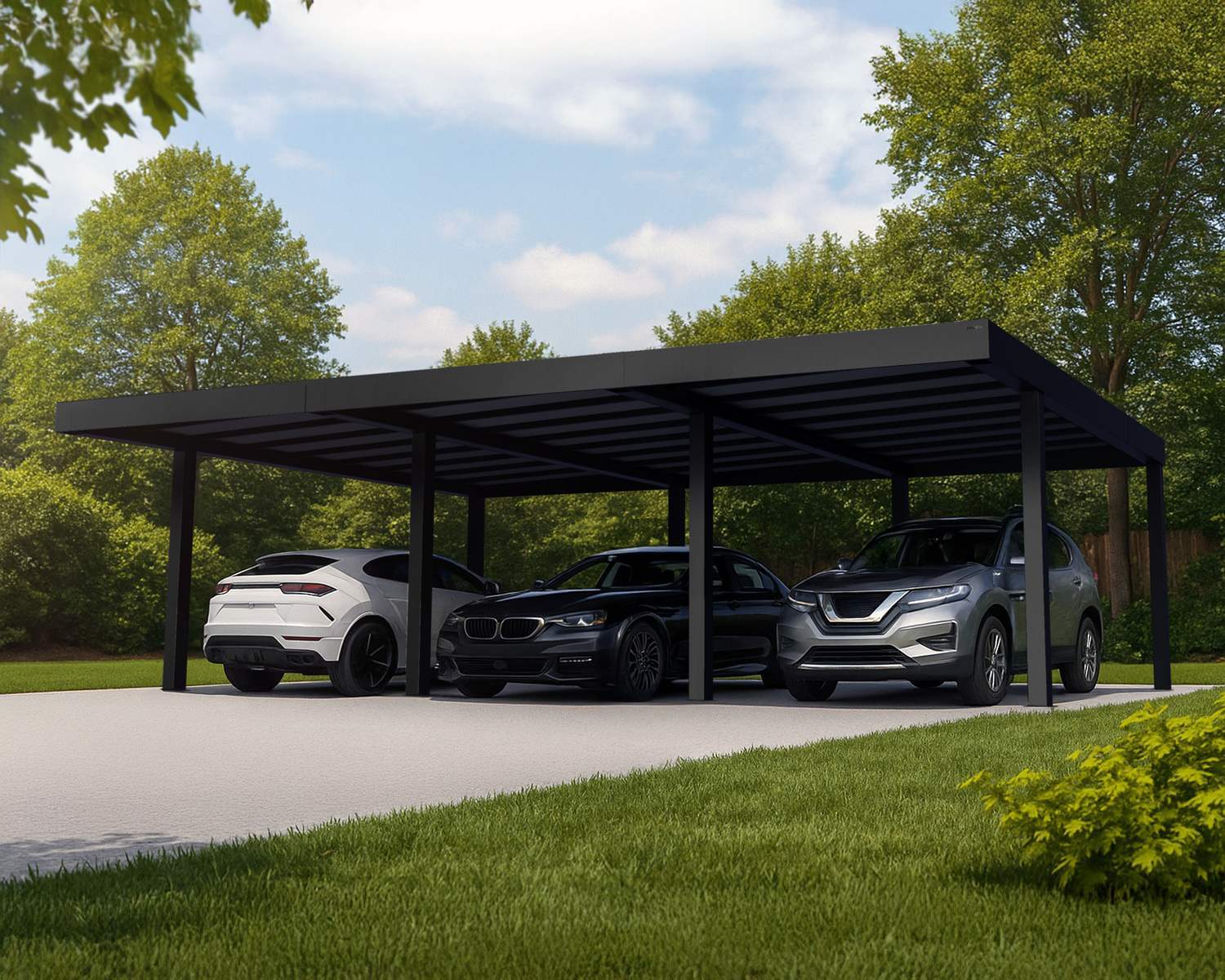 The Oslo 3-car carport combines sleek, modern aesthetics with robust functionality, offering year-round protection for your vehicles. Crafted from rust-resistant, powder-coated aluminum and featuring a durable, opaque polycarbonate roof, this 20 ft x 30 ft carport is built to withstand the elements while enhancing the look of your outdoor space.