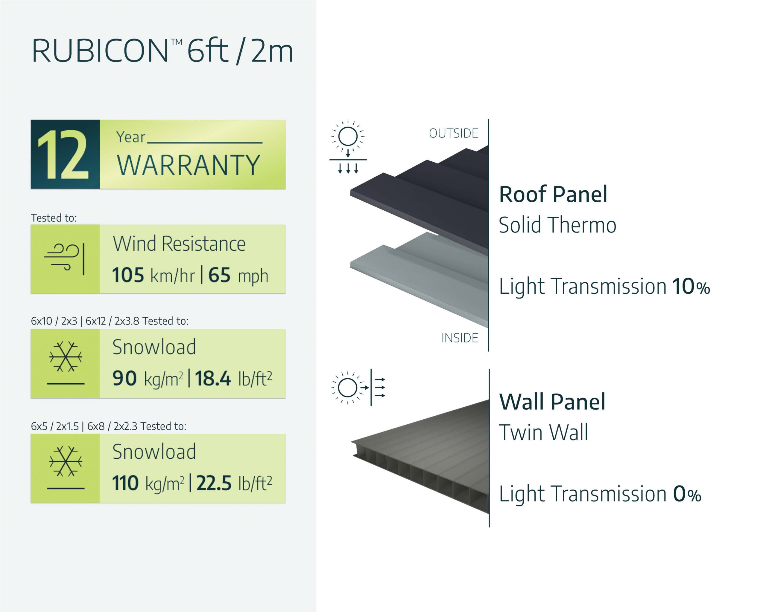 - 100% UV protected, 10mm multiwall fortified polycarbonate panels maintain their integrity