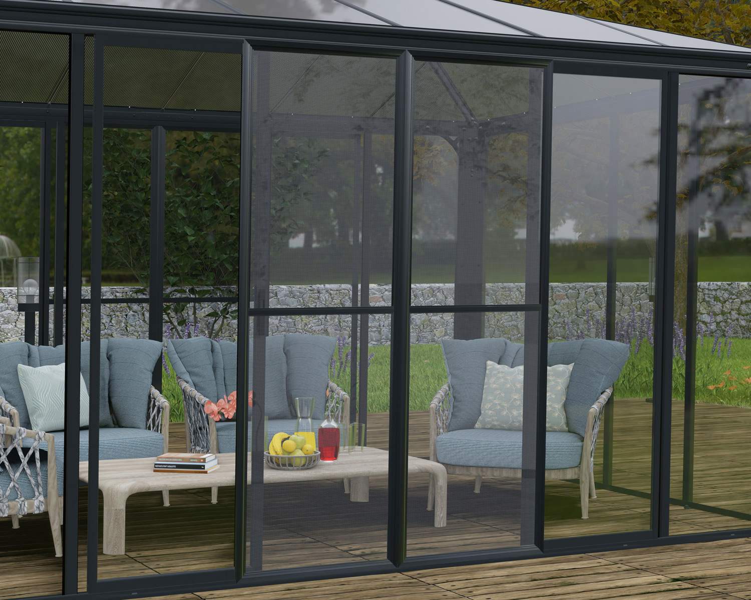 Palram – Canopia Screen door Set is aesthetically appealing and functional, it will add to your comfort by allowing you to enjoy the fresh breeze yet keep out unwanted bugs. The Screen Door Set was specifically designed for the SanRemo, to be assembled on its own channel, without removing the doors. Simply connect the pre-assembled sliding screen doors to any or all 3 sides for a seamless facade.