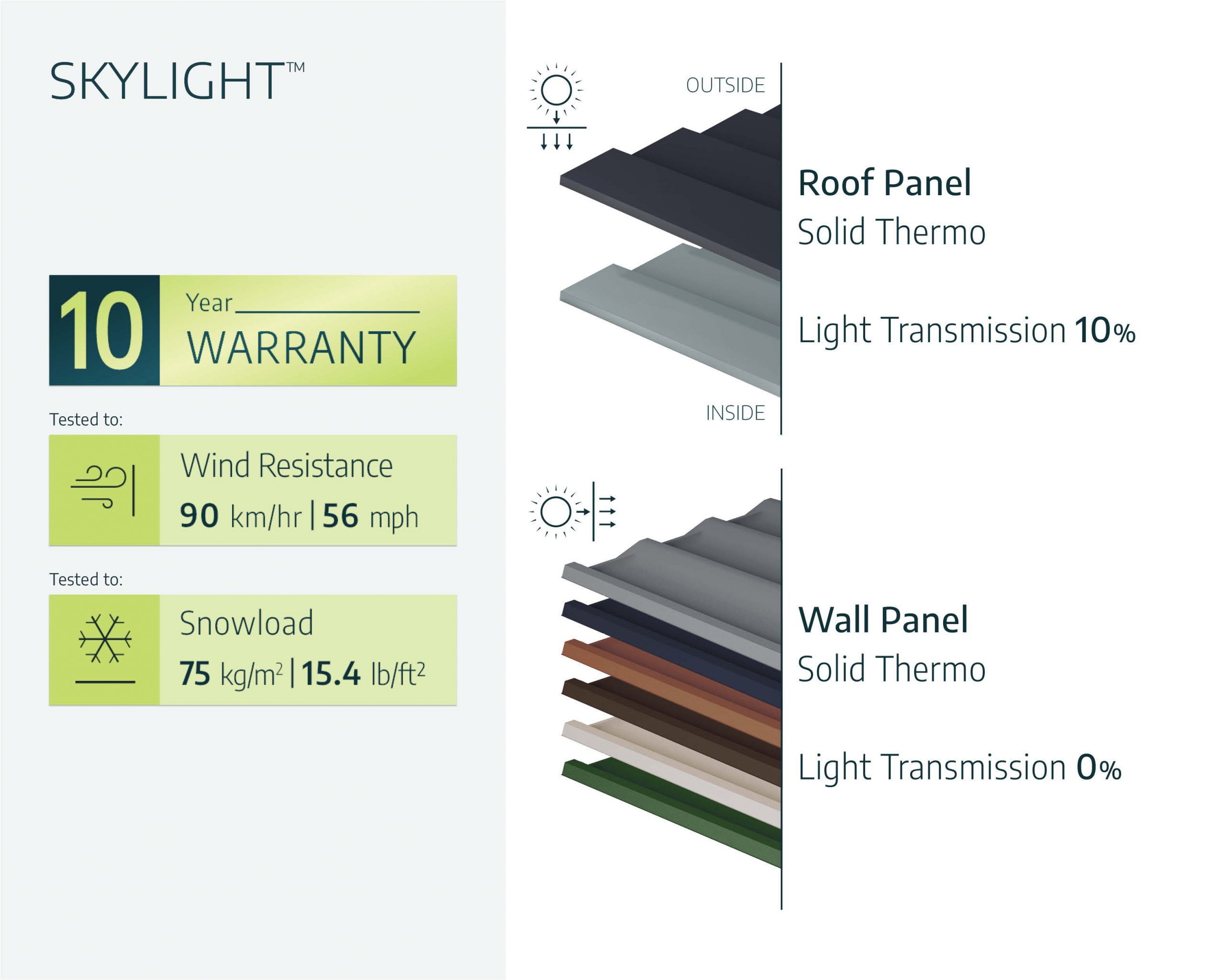 - Technical information, including dimensions, panel thickness, and wind and snow load, can be found in the photo gallery above.