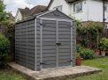 The Skylight garden storage shed is made with a reinforced aluminium frame and flexible polycarbonate panels specially engineered to withstand the expansion and shrinkage associated with weather changes. The panels do not bend, fracture, or discolour over time, giving your things maintenance-free protection for years to come. The unique Skylight roof panels transmit natural sunlight during the day while giving you opaque external visibility for maximum privacy. Designed with your outdoor living needs in mind, the Skylight plastic shed will complement your home, enhance your outdoor living space, and organize and protect your things.