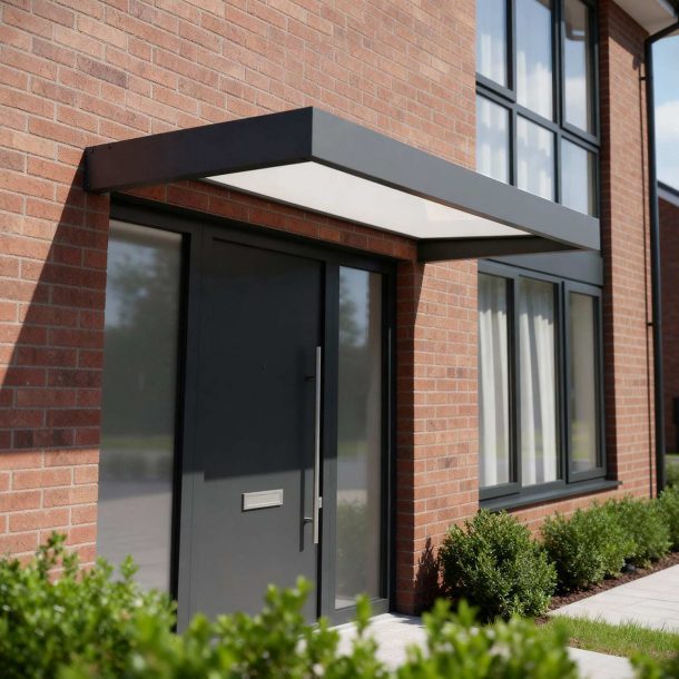 The Sophia redefines door awnings as you know them. A gorgeous grey aluminium frames a clear panel that is as resilient as it is attractive, upgrading the look and functionality of the outside of your home. The Modern Door Cover protects you, your door, your entryway, and everything underneath it. This ultra-resilient Porch Awning is easy to install and engineered to withstand harsh weather conditions so that you, your things, and your door are protected for years to come. With the Sophia Door Awning, you get the protection you need in the look you desire.