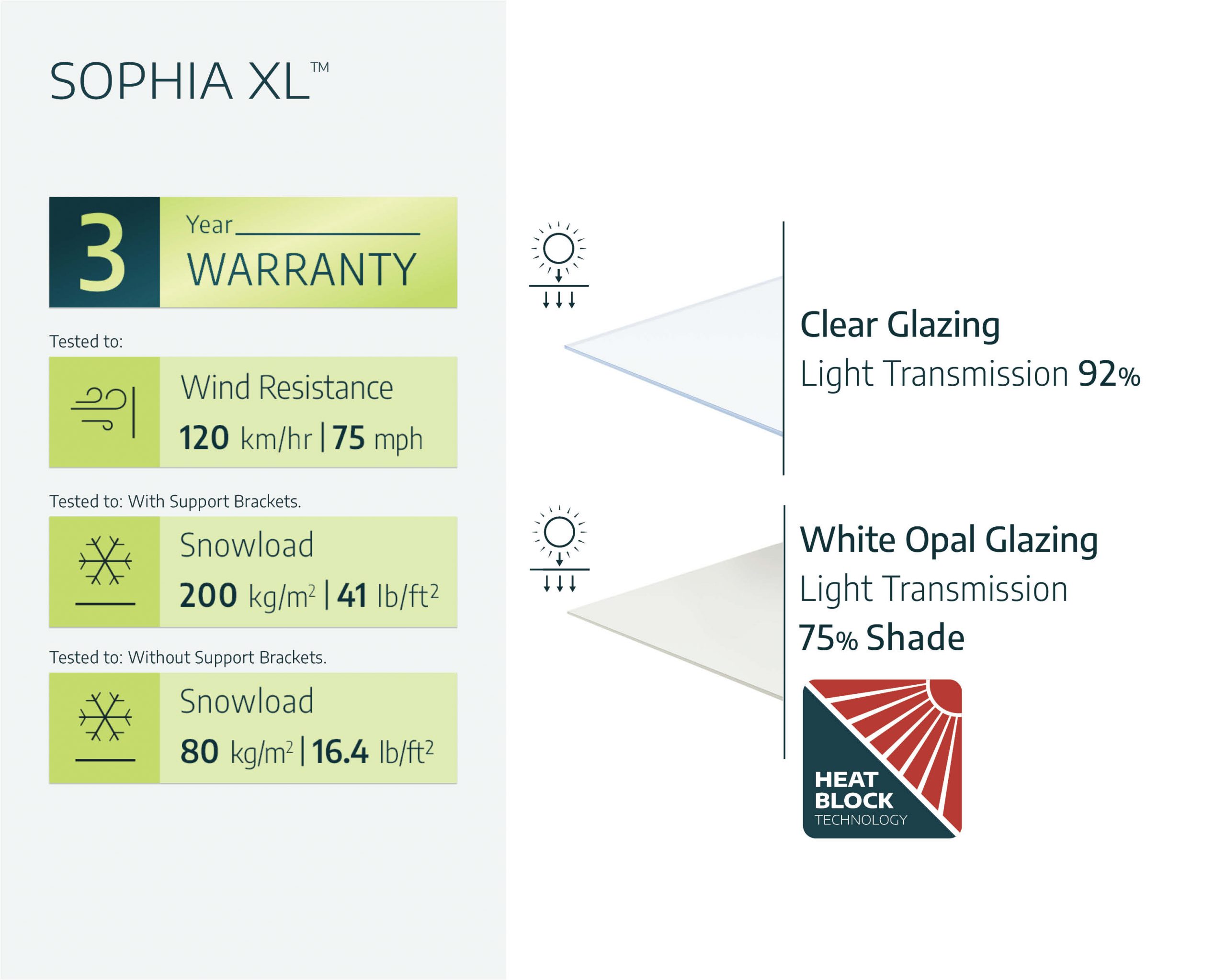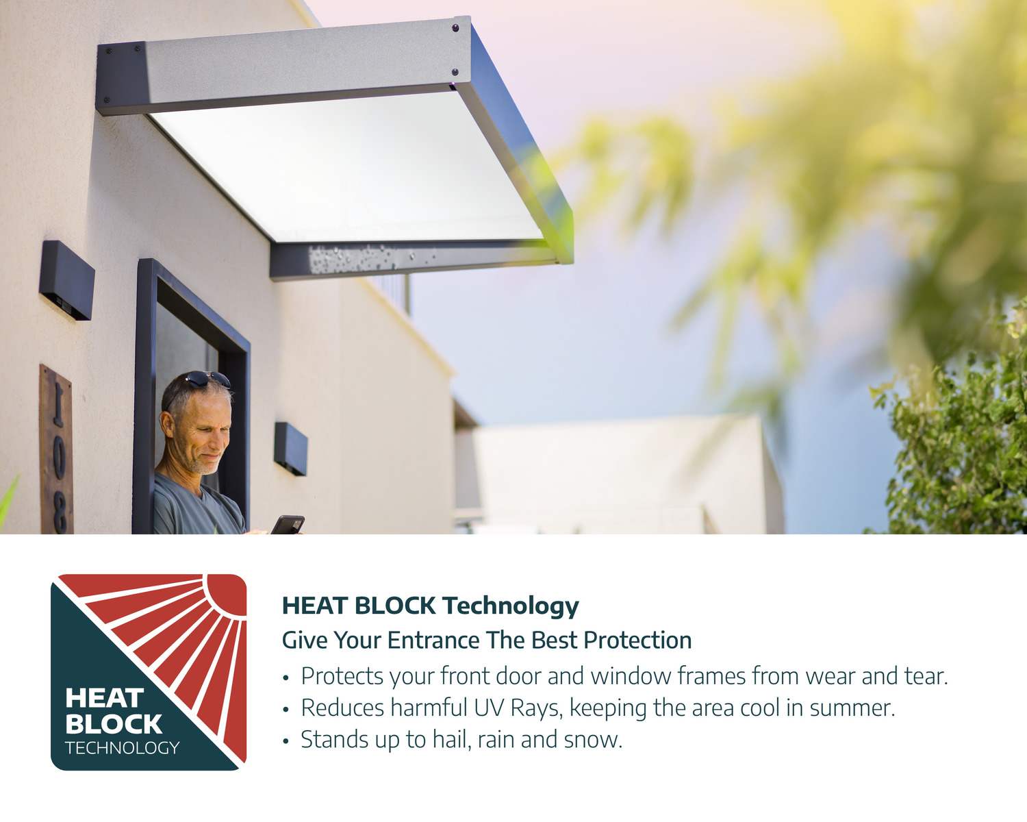 - Heat Block Technology: Ultra-safe, high impact 4 mm white opal acrylic panels have Heat Block Technology that reduces harmful UV rays and protects your entrance.