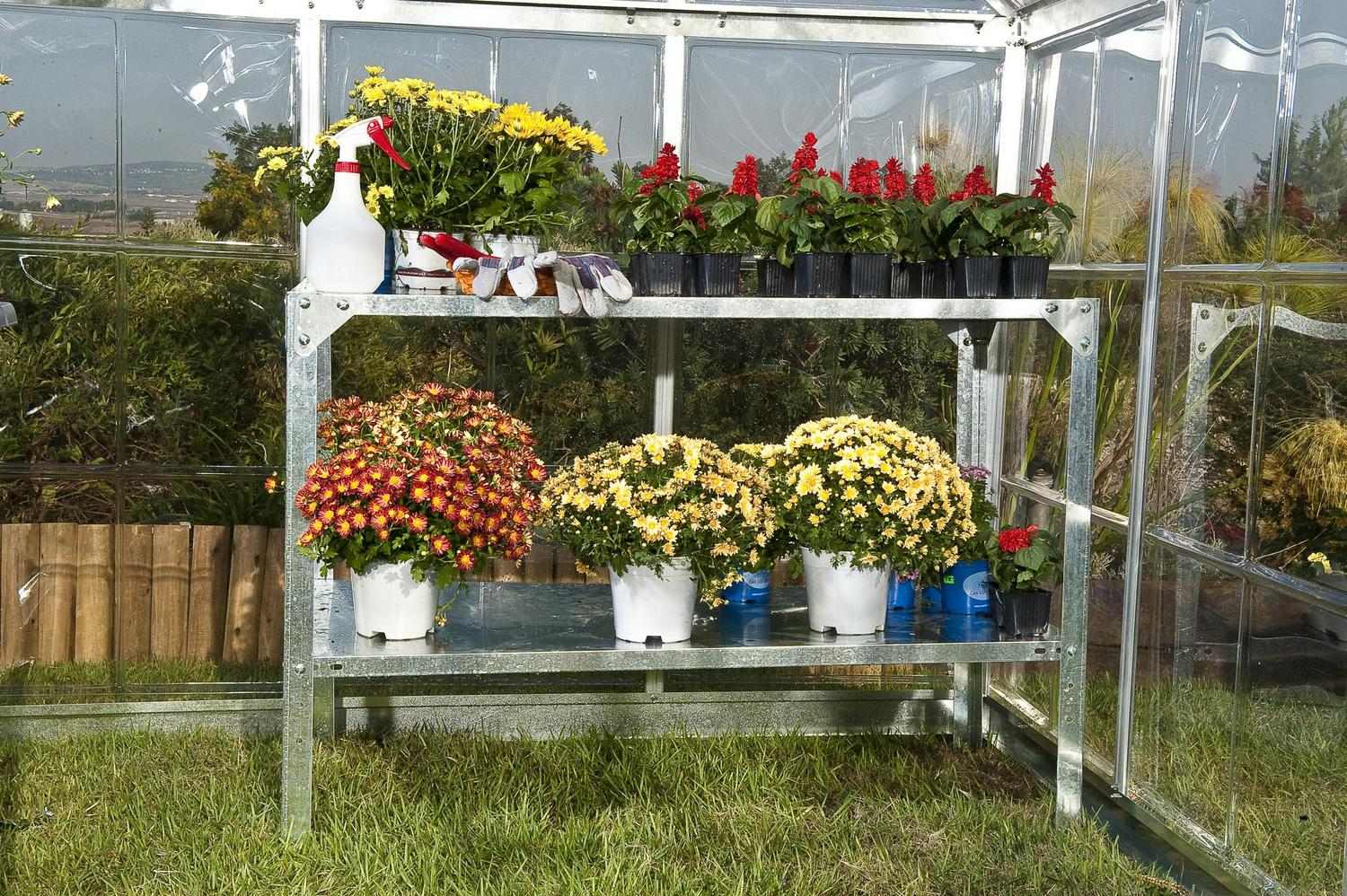 This 2 Level adjustable Greenhouse Potting Bench is the perfect shelf for organizing space in your Palram – Canopia greenhouse, providing the potting working area with a storage shelf below. It can also work at your shed, garage, backyard, etc. The two shelves provide ample storage and workspace and allow for a heavyweight. The lower shelf’s height can be adjusted to meets your gardening needs. It is maintenance-free and one of its main advantages is its top shelf’s dual-use; as an everyday gardening tasks shelf or if positioned upside-down as a soil tray. This bench is made from durable galvanized steel, it is freestanding, portable & easy to assemble, and can be moved anywhere at your convenience.2 tier standalone shelving system for a well-organized space Top shelf can be positioned upside-down as a soil tray Lower shelf’s height can be adjusted Durable galvanized steel Strong and stable enough to use as a work station Each shelf can hold up to 75 kg Quick and easy assembly.